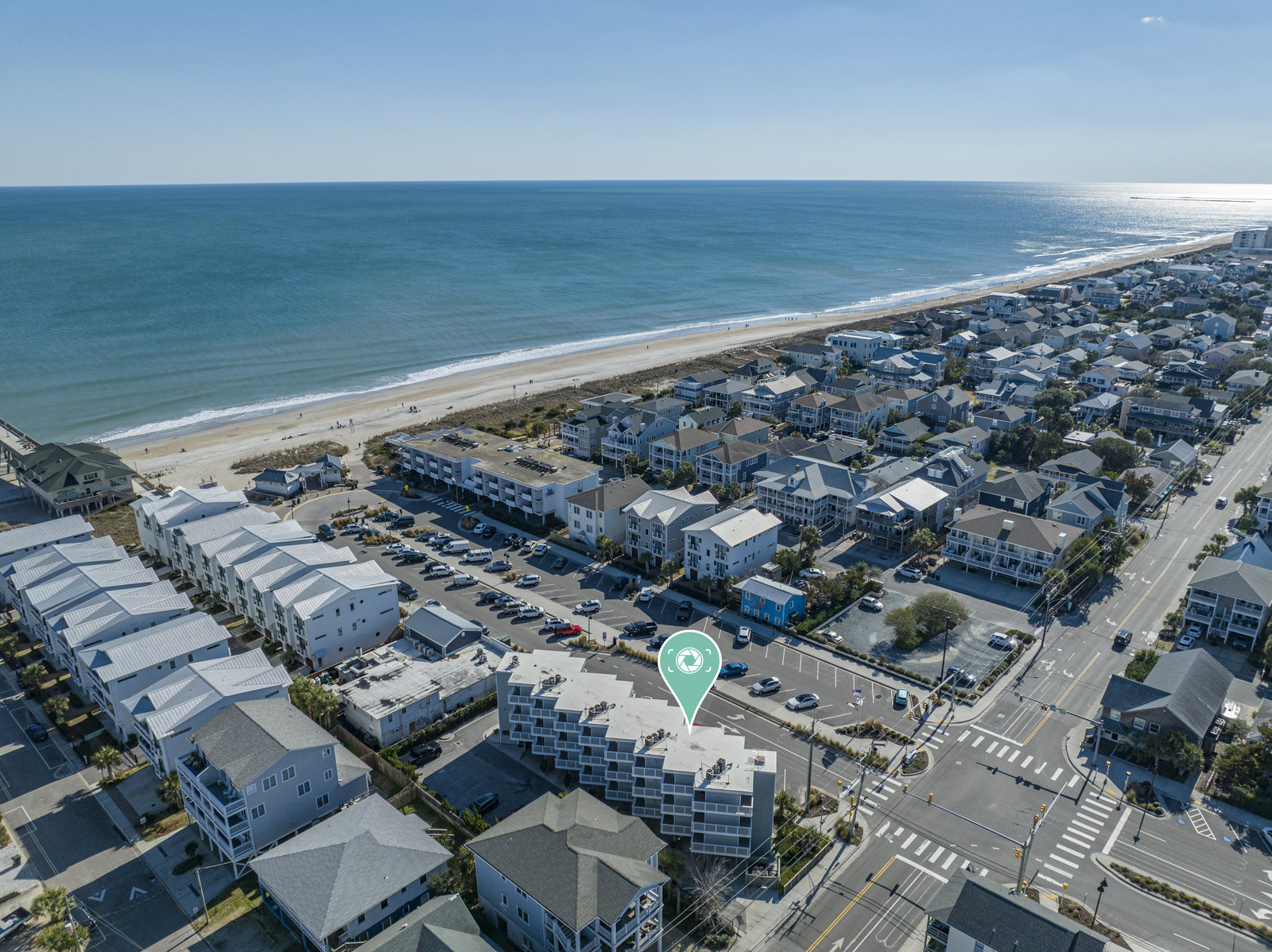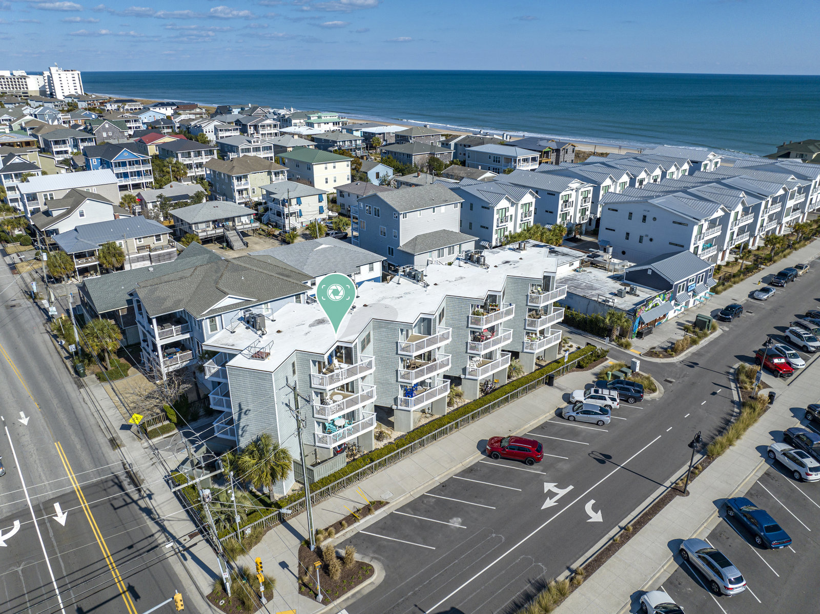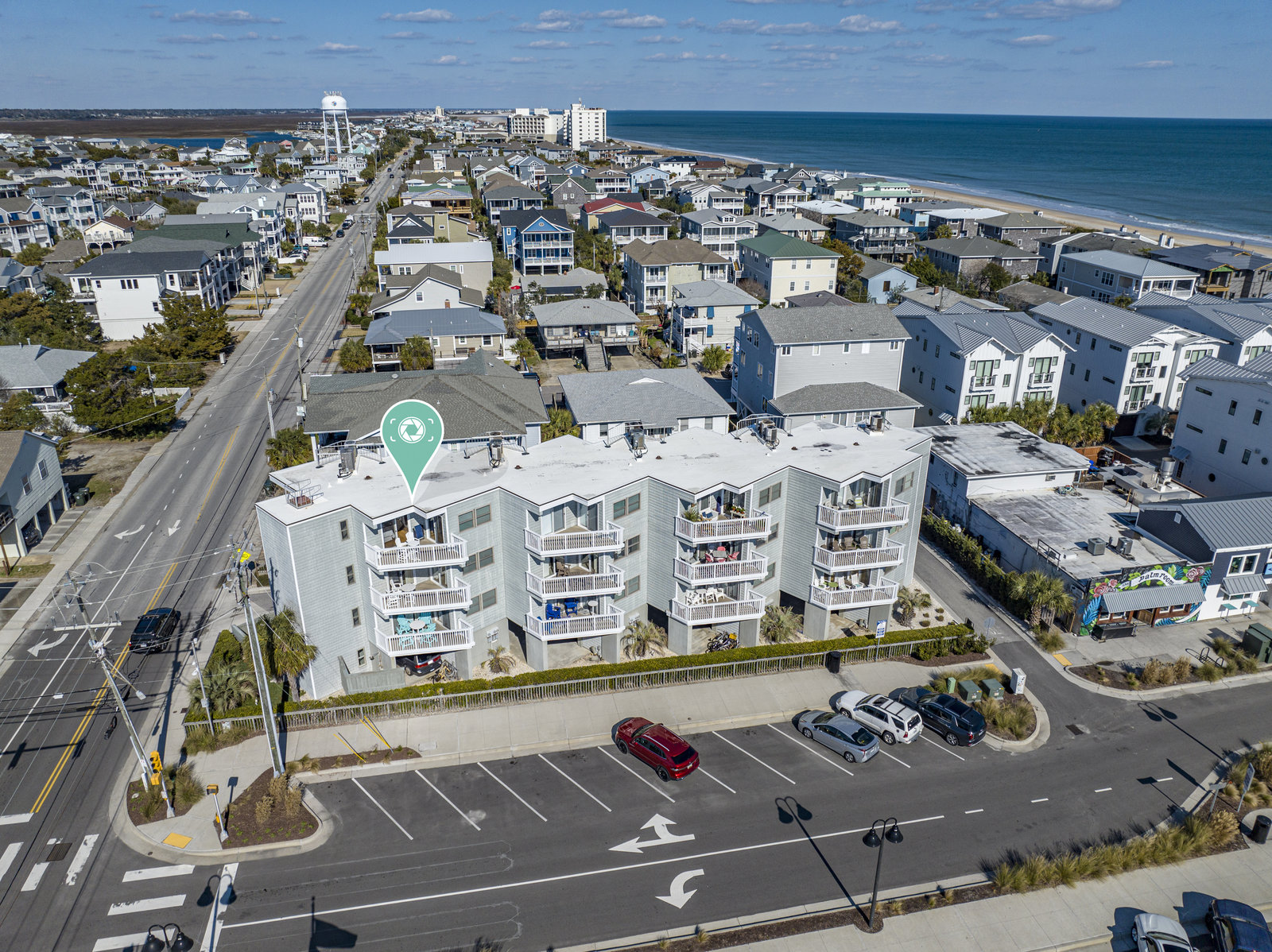 This is a top-floor end unit condominium with breathtaking views of the Atlantic Ocean. From the private balcony, enjoy both sunrise views to the east and sunset views to the west. As a 3rd-floor unit, it allows extra peace and quiet as there are no neighbors above. The unit comes with 2 covered parking spaces and a storage unit for all your beach gear. It features bamboo flooring throughout and a partially covered and open balcony that overlooks the gorgeous Atlantic Ocean, as well as the beach access at Salisbury St. and Lumina Ave. Positioned just steps to the area's dining, shopping, nightlife, and The Loop, this location is ideal. The HOA dues are very reasonable, and the building is well-maintained. It could be a great investment property or a cozy home away from home. There are built-in bunk beds (currently used for storage) near the bathroom. With a pull-out couch, this unit could sleep 6. This pricing is not often found in Wrightsville Beach. Don’t miss out on this amazing opportunity!