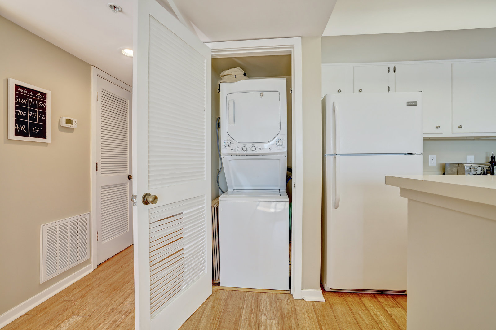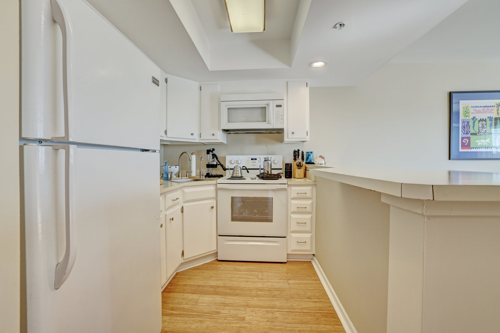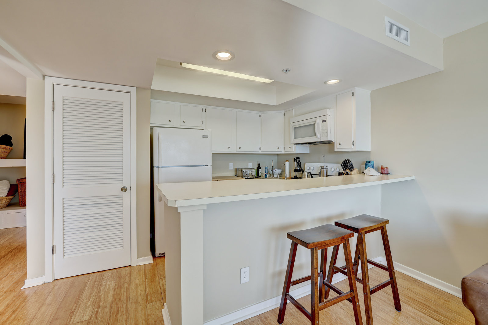 This is a top-floor end unit condominium with breathtaking views of the Atlantic Ocean. From the private balcony, enjoy both sunrise views to the east and sunset views to the west. As a 3rd-floor unit, it allows extra peace and quiet as there are no neighbors above. The unit comes with 2 covered parking spaces and a storage unit for all your beach gear. It features bamboo flooring throughout and a partially covered and open balcony that overlooks the gorgeous Atlantic Ocean, as well as the beach access at Salisbury St. and Lumina Ave. Positioned just steps to the area's dining, shopping, nightlife, and The Loop, this location is ideal. The HOA dues are very reasonable, and the building is well-maintained. It could be a great investment property or a cozy home away from home. There are built-in bunk beds (currently used for storage) near the bathroom. With a pull-out couch, this unit could sleep 6. This pricing is not often found in Wrightsville Beach. Don’t miss out on this amazing opportunity!