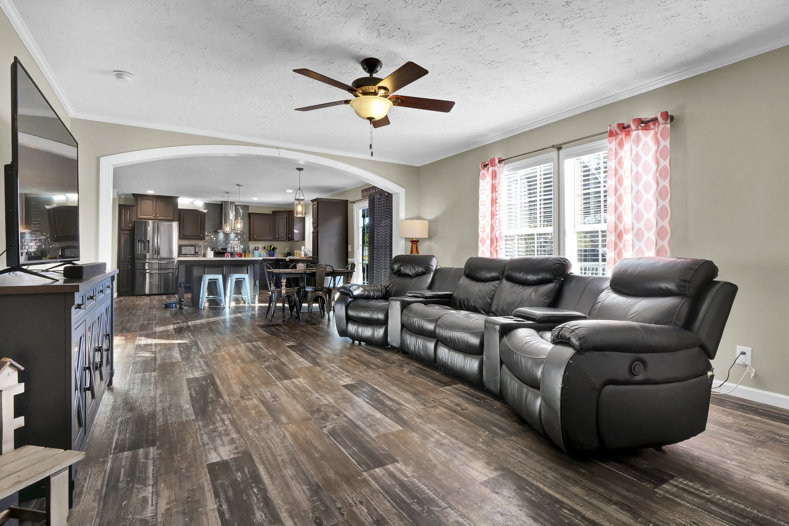 The home's open space is further highlighted by a stunning archway leading to the family room. This thoughtful design element not only enhances the home's aesthetic but also creates a sense of flow and connectivity throughout the space. Catering to modern convenience, the home features two refrigerators and a Birm® water filtration system, ensuring the utmost in functionality and health-conscious living.