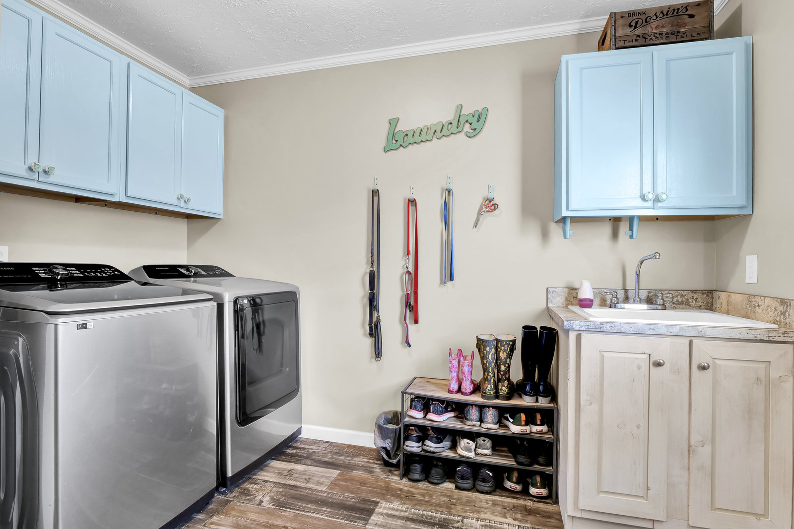Practicality is not overlooked, as the home includes a large laundry room complete with a drop zone and sink, adding to the overall efficiency and ease of daily living.