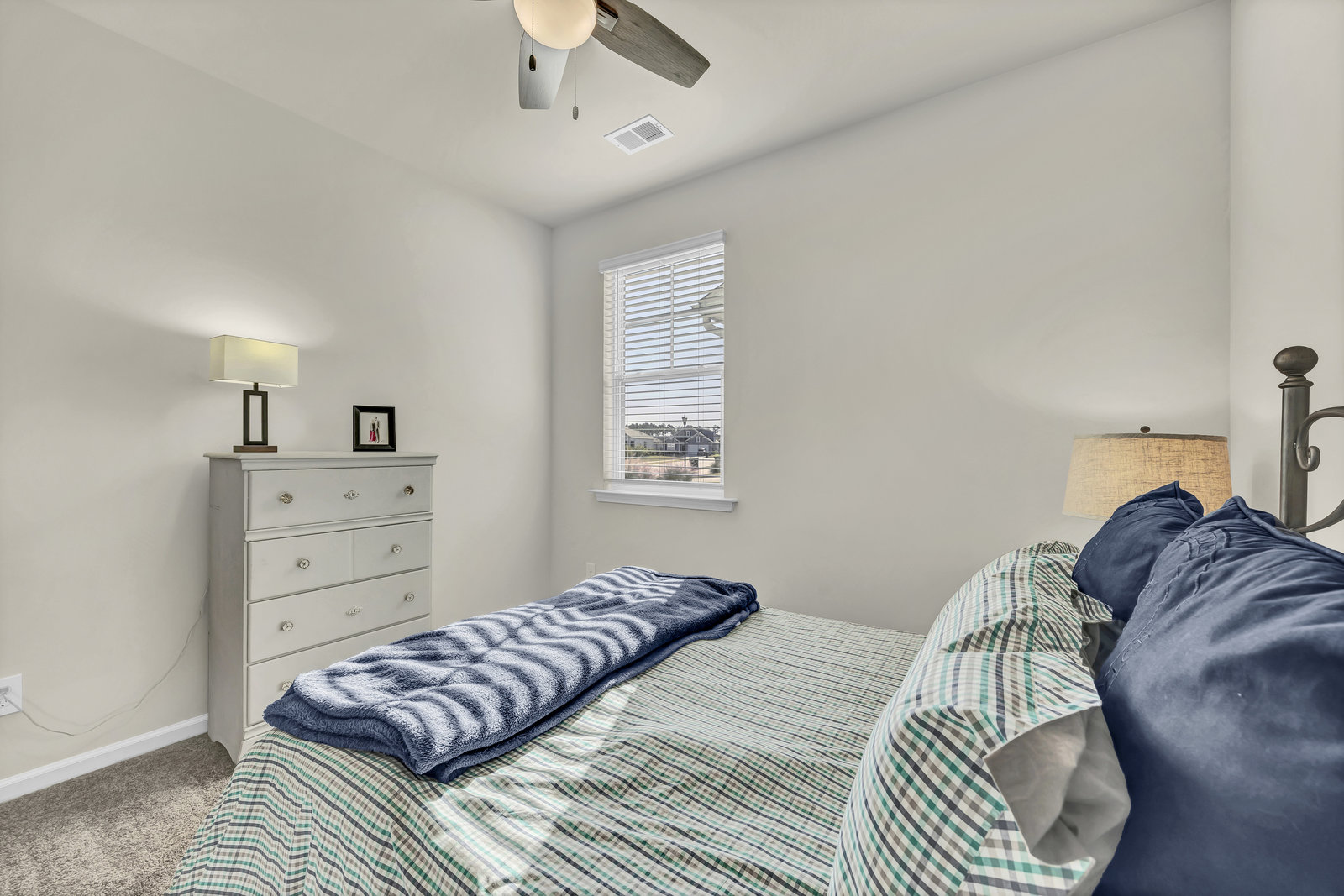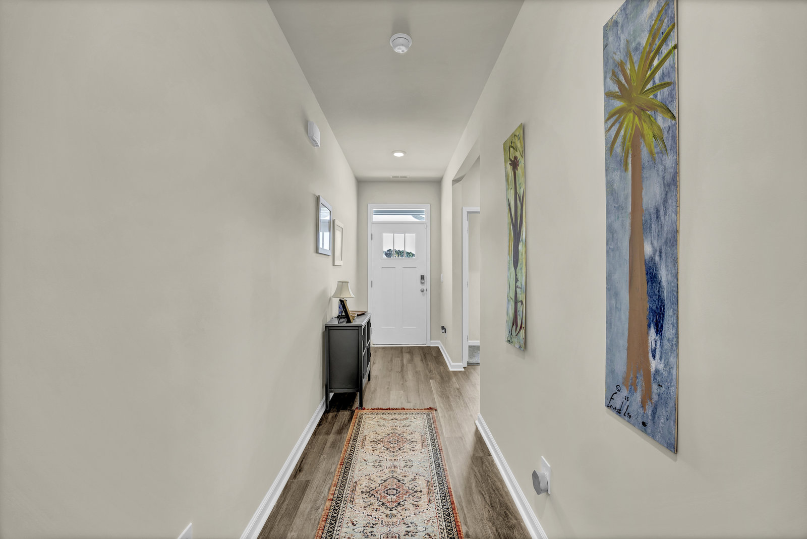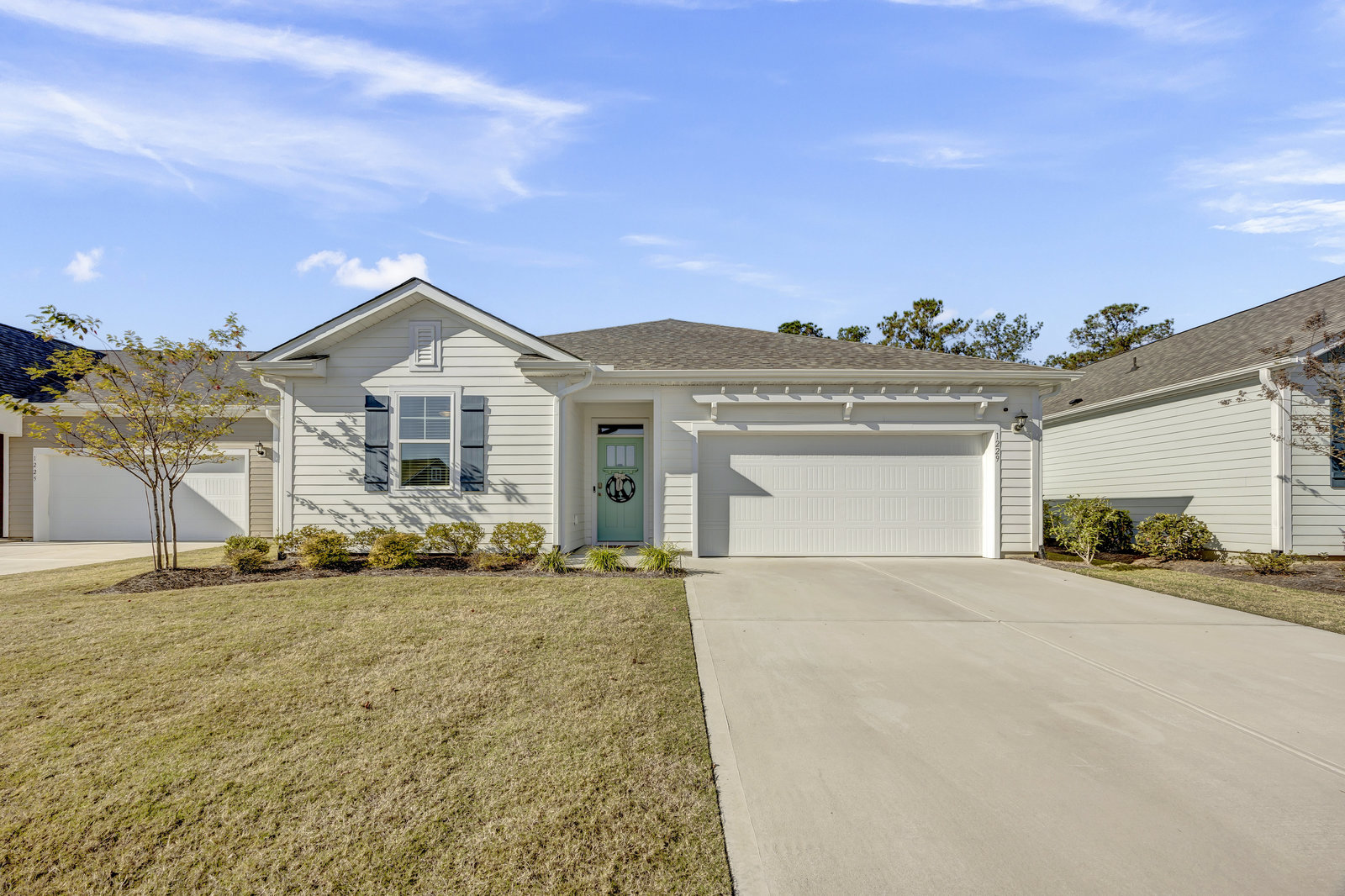 Hazel Branch at Brunswick Forest offers a well-rounded lifestyle with access to resort-style amenities, shopping, dining, and medical facilities, giving residents a comfortable blend of everyday convenience and coastal leisure. With 3 bedrooms, 2 bathrooms, and a 2-car garage, this home features a sensible open-concept layout designed for everyday comfort. Luxury vinyl plank flooring extends throughout the foyer, living room, dining room, and kitchen, creating a cohesive and modern feel. The kitchen is a standout with its large center island, granite countertops, pantry, and stainless steel appliances. A sliding glass door opens to a covered patio, and the back yard faces a natural setting that enhances privacy. Modern convenience is built right in. The home includes a smart video doorbell, smart thermostat, and a smart-hub touch screen interface—all connected to an app that allows you to monitor and manage key systems effortlessly. The split-bedroom floor plan places the primary suite on its own side of the home. This relaxing space includes a double-sink vanity, shower, and a large custom walk-in closet. Two guest bedrooms are located off the foyer, and ceiling fans are installed in every bedroom as well as the living room for added comfort. Living in Brunswick Forest means enjoying resort-style amenities, including miles of walking trails, fitness centers, indoor and outdoor pools, tennis and pickleball courts, and a kayak/canoe launch on Town Creek. The community also offers an active social calendar with clubs and gatherings throughout the year. Lawn maintenance is included in the Hazel Branch section, making this home an easy choice for those seeking both convenience and recreation.